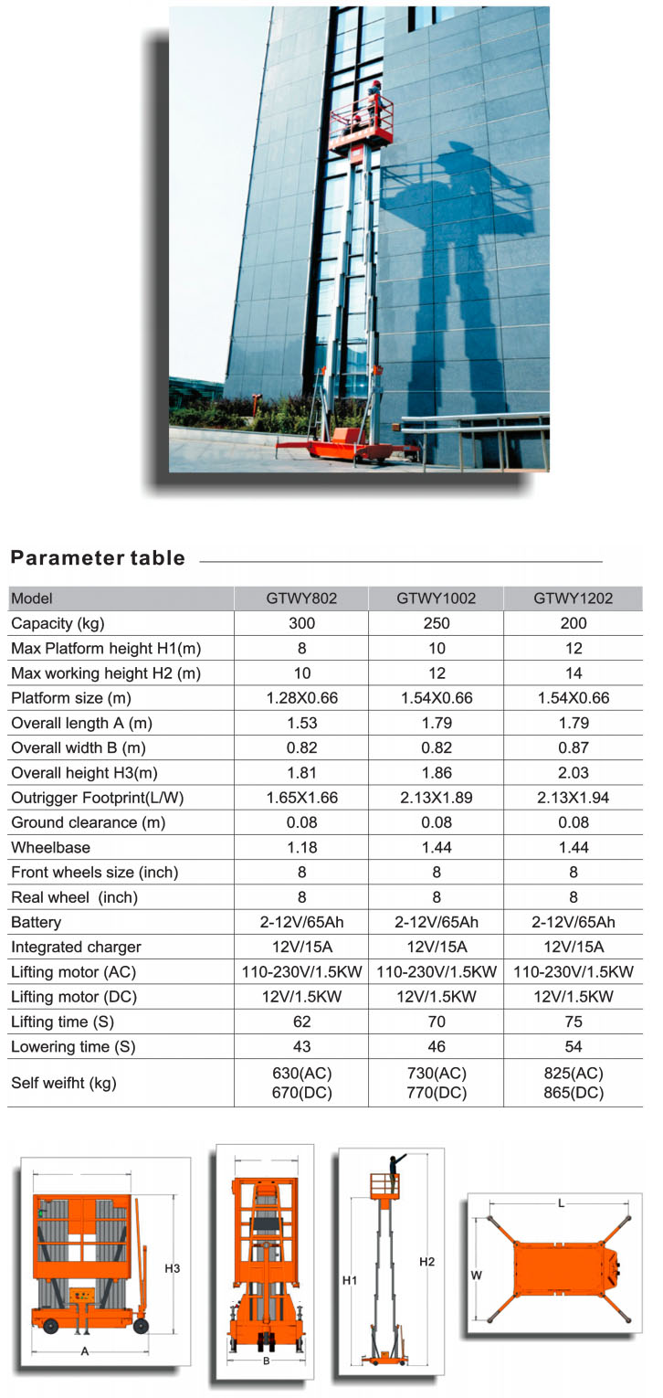 Alumunium Alloy Aerial Lift Platform GTWY