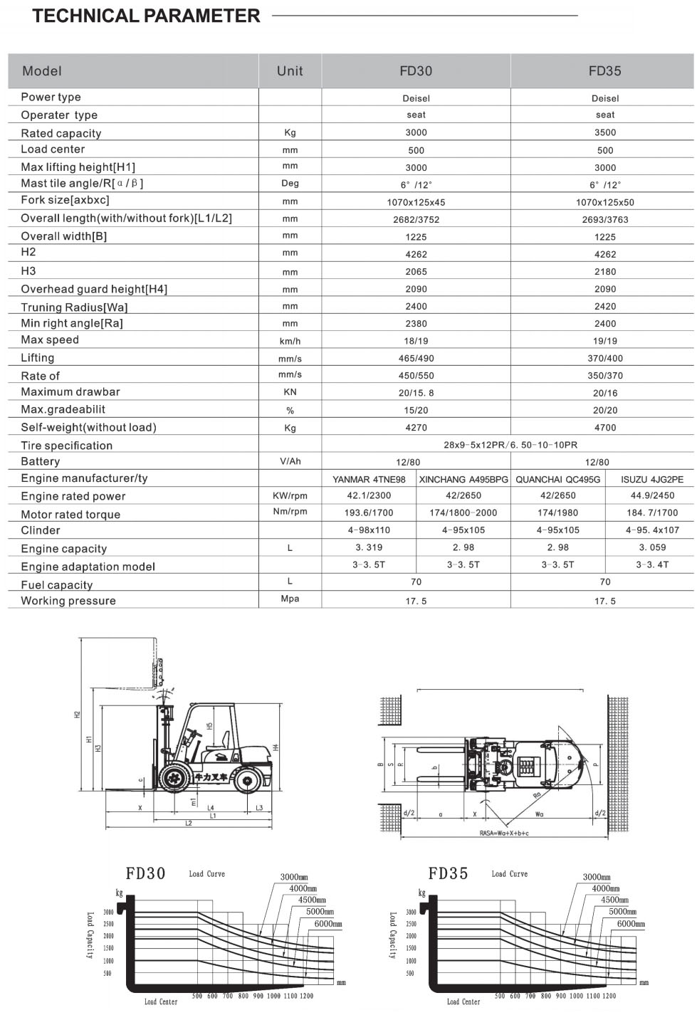 - This diesel forklift truck can be designed with two stage free lifting mast or three stage mast ,luxurious and closed driving room , solid tire , sideshifter , roll clamps . clamp holder , and nonstandard forks ect , to meet your different needs .
