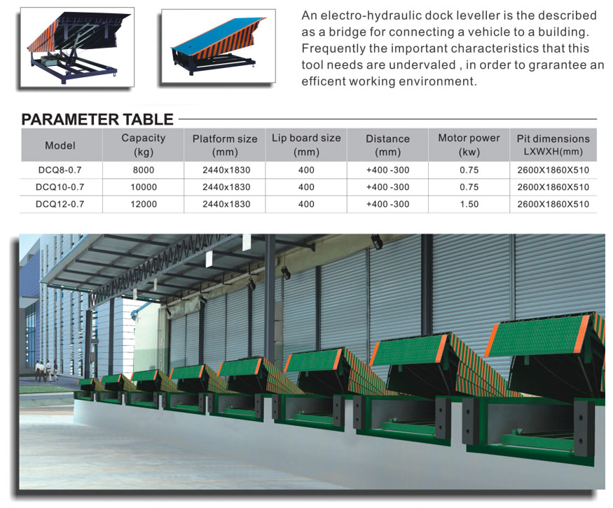 An electro-hydraulic dock leveller is the described as a bridge for connecting a vehicle to a building. Frequently the important characteristics that this tool needs are undervaled , in order tograrantee an efficent working environment.